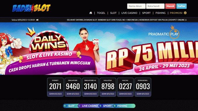 BADAISLOT adalah situs judi togel online dengan pasaran yang kami sediakan merupakan pasaran terbaik atau terbanyak dipasang oleh para bettor di Indonesia. Adapun pasaran togel singapura adalah togel yang banyak dimainkan dikarenakan memiliki lisensi resmi langsung oleh pemerintah singapura dengan akses yang mudah dan aman untuk dimainkan. BADAISLOT menawarkan permainan judi slot, judi kasino, judi bola terlengkap yang bisa anda mainkan di smartphone kesayangan anda dengan tampilan yang didukung oleh sistem HTML5 serta keamanan data member yang dijamin valid dan aman.